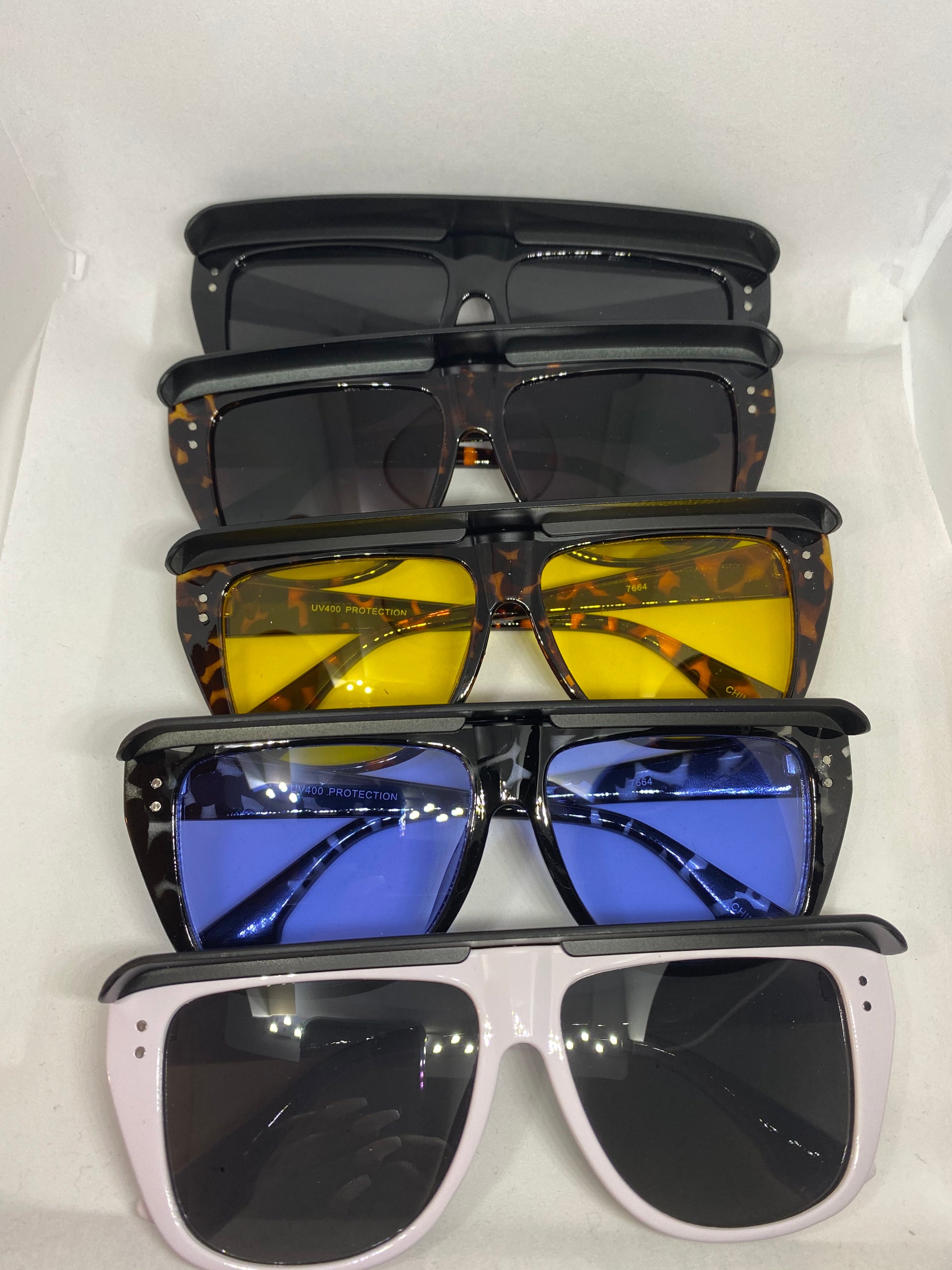 – White, Blue/Tortoise, Yellow/Tortoise, Tortoise, and Black